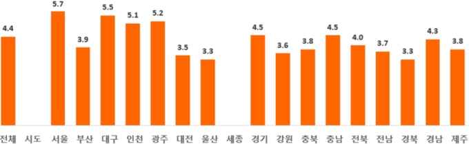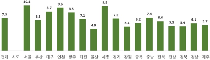 그래프를 보면 알 수 있듯이 서울과 세종의 환자 발생률이 현저히 낮고, 다른 비도시지역보다 서울이나 광역시 등에서 심정지 발생률이 낮은 것을 확인할 수 있다.