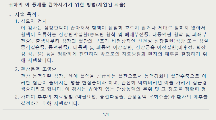 위와 같은 상황에서 환자는 시술의 대략적인 정보와 내용이 담긴 동의서에 대한 설명을 듣고 시술 여부를 결정하게 된다.