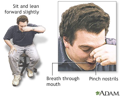 환자에게 코를 풀어 비강안에 있는 피와 혈전등을 밖으로 배출할 수 있도록 한다. 출혈이 있는 비강 쪽으로 국소 혈관수축제를 주입한다.