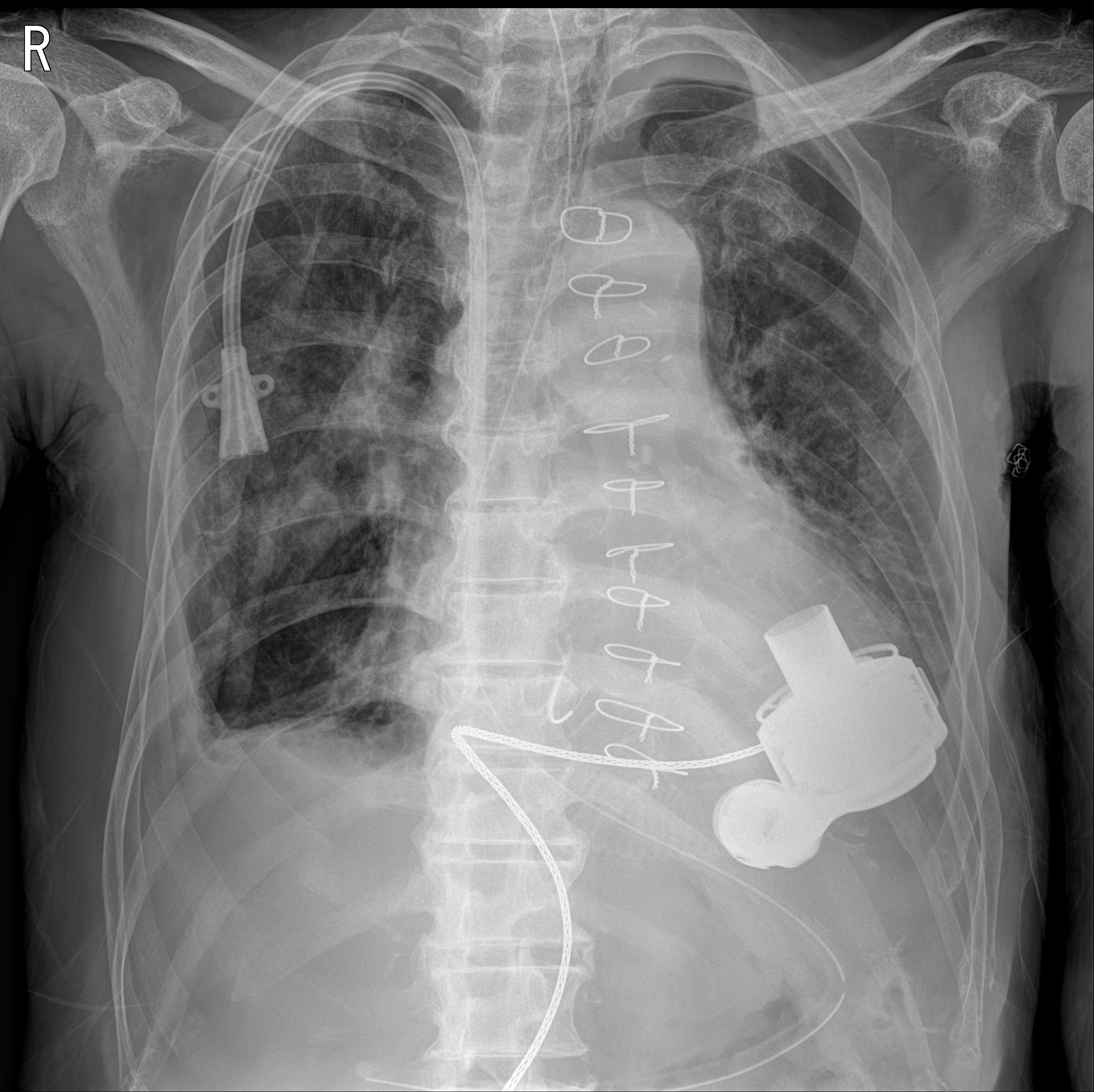 DCMP로 cardiogenic shock이 있어 VA ECMO, LV venting을 거처 LVAD (abbott사의 HeartMate 3) 적용하게 된 환자.