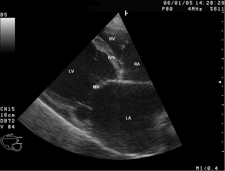 - 좌심실 확장, 좌심실 수축기능 저하, 심실중격 두께는 정상, 승모판 역류