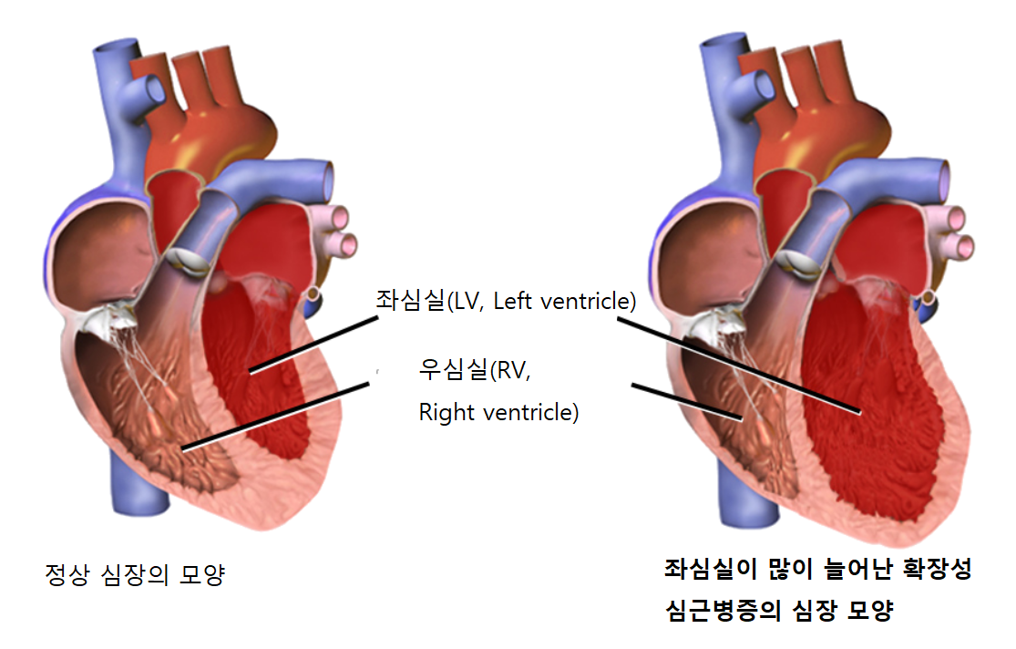 - 심실의 수축기능이 저하되면서 심방과 심실의 확장이 진행되는 질환