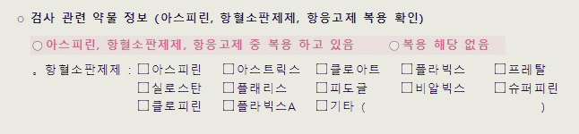 추가로 내시경 검사가 제한되거나 영향을 받을 수 있는 환자의 정보에 대한 것도 확인을 한다.