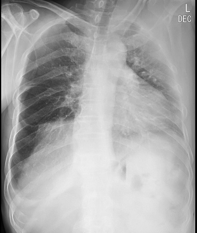 위 사진을 예시로 보면 Chest PA로는 환자의 우측 흉강에만 흉수가 보인다. decubitus view를 촬영해 보면 우측으로는 흉수가 많이 보이고, 좌측은 적지만 흉수가 있어 보임을 알 수 있다.