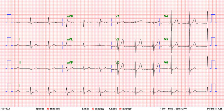 트리아지(triage) 이후 바로 심전도(ECG=EKG, electrocardiogram)를 시행하였다.