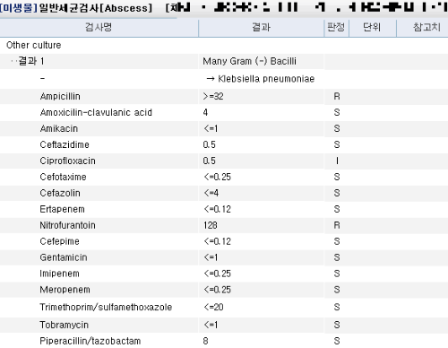 다행히 흔히 사용하는 3세대 세팔로스포린계열에 내성이 없는 균이었다.