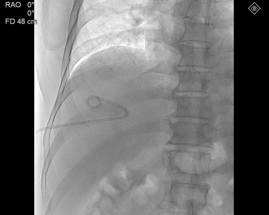 아마도 환자분은 PCD로 배액 되는 농양이 충분히 줄어든 이후 PCD를 제거하고,