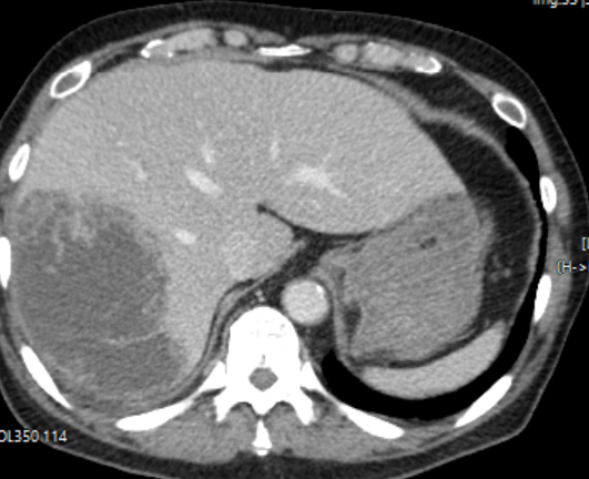 화농성 간농양의 양상을 보이고 있었고, 다행히 낮시간에 내원한 환자였기에 나는 곧바로 영상의학과 인터벤션 팀에 배농을 위한 경피적 삽관술을 의뢰하면서, 소화기내과로 환자 입원을 의뢰하였다.