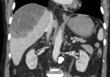 환자의 우측 간의 절반정도가 농양화 되어 있었던 것이었다.