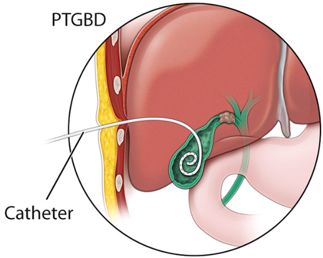 따라서 대부분 수술적 위험도가 높다 판단되는 high morbidity의 환자에서는 보다 덜 침습적인(less invasive) 방법으로 PTGBD(Percutaneous Transhepatic Gall Bladder Drainage, 경피적간담낭배액술)을 고려하게 되는 경우가 많다.